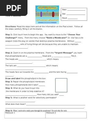 | Title: Cell Defense Worksheet Pdf Ipad App Cell Defense The Plasma Membrane Directions U200b Read The Steps Here And All The Information On The Ipad Screen Course Hero |